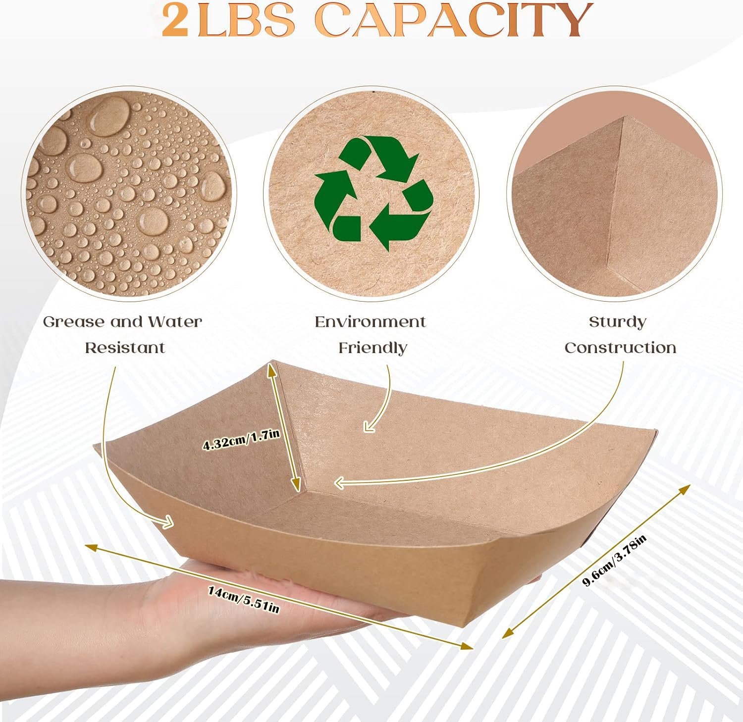 These eco-friendly food trays are biodegradable, recyclable, and plastic-free. Choosing kraft paper trays supports environmental responsibility and appeals to eco-conscious customers.
