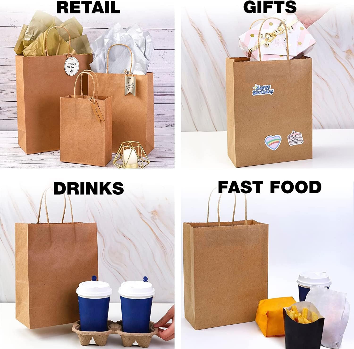 Available at factory price, these kraft paper carry bags provide a cost-effective, sustainable, and professional alternative to plastic bags while enhancing brand image and customer convenience.